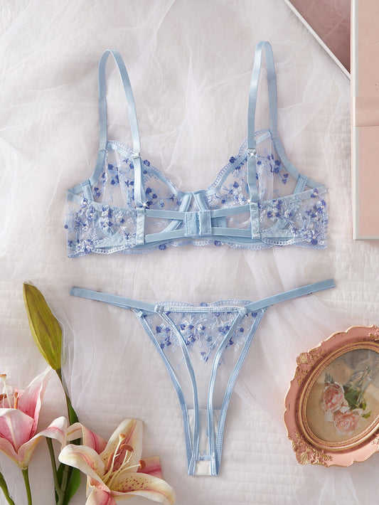 Get Extra 10% OFF At CheckoutBlue Whisper Lace Bra & Thong Set