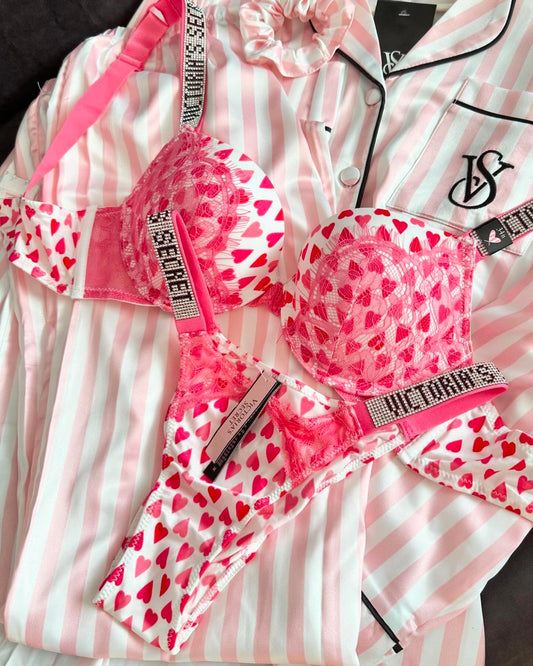 VS Satin & Lace Shine Strap Push-Up Bra + Satin & Lace Bombshell Shine Strap Brazilian Panty