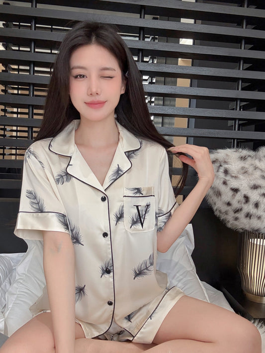Victoria's Secret Satin Long Pajama Set fur cuff