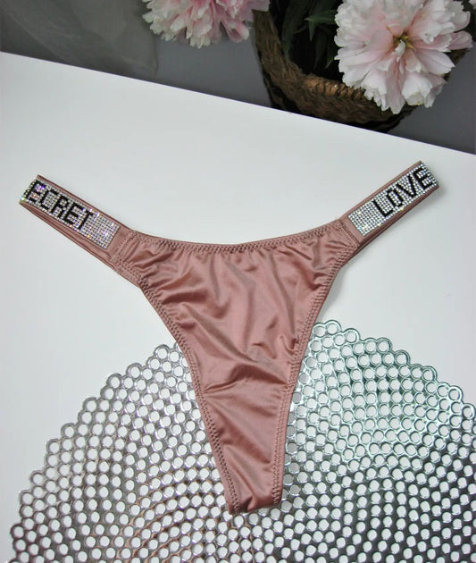 Women Sexy Rhinestone G-string Thongs Lingerie T-back Underwear Panties Fitness- Dark Brown