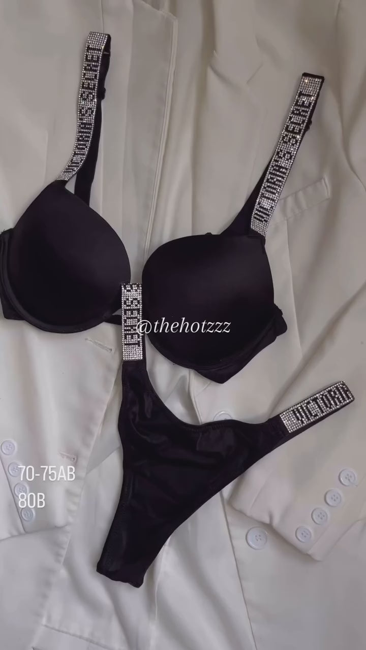 Shine Strap Push-Up Bra + Bombshell Shine Strap Brazilian Panty- Black