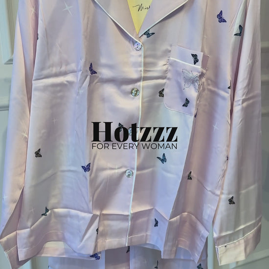 Drift into serenity with the Hotzzz Premium Butterfly Bloom Satin Set, a delicate ode to comfort and feminine grace.