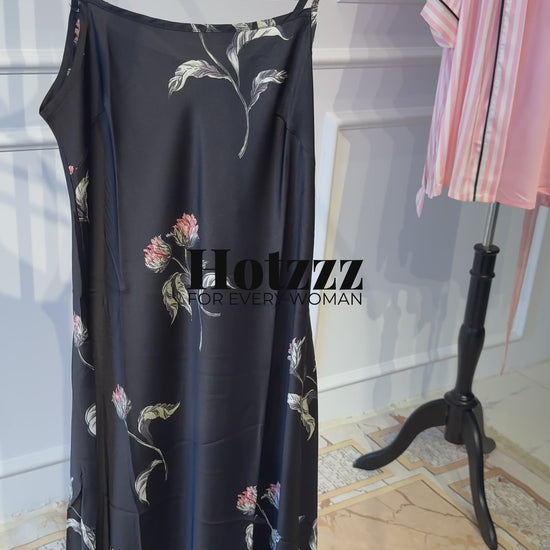 Effortlessly elegant and endlessly captivating, the Hotzzz Premium Midnight Bloom Slip Dress is your go-to piece for sophisticated nights and serene mornings.