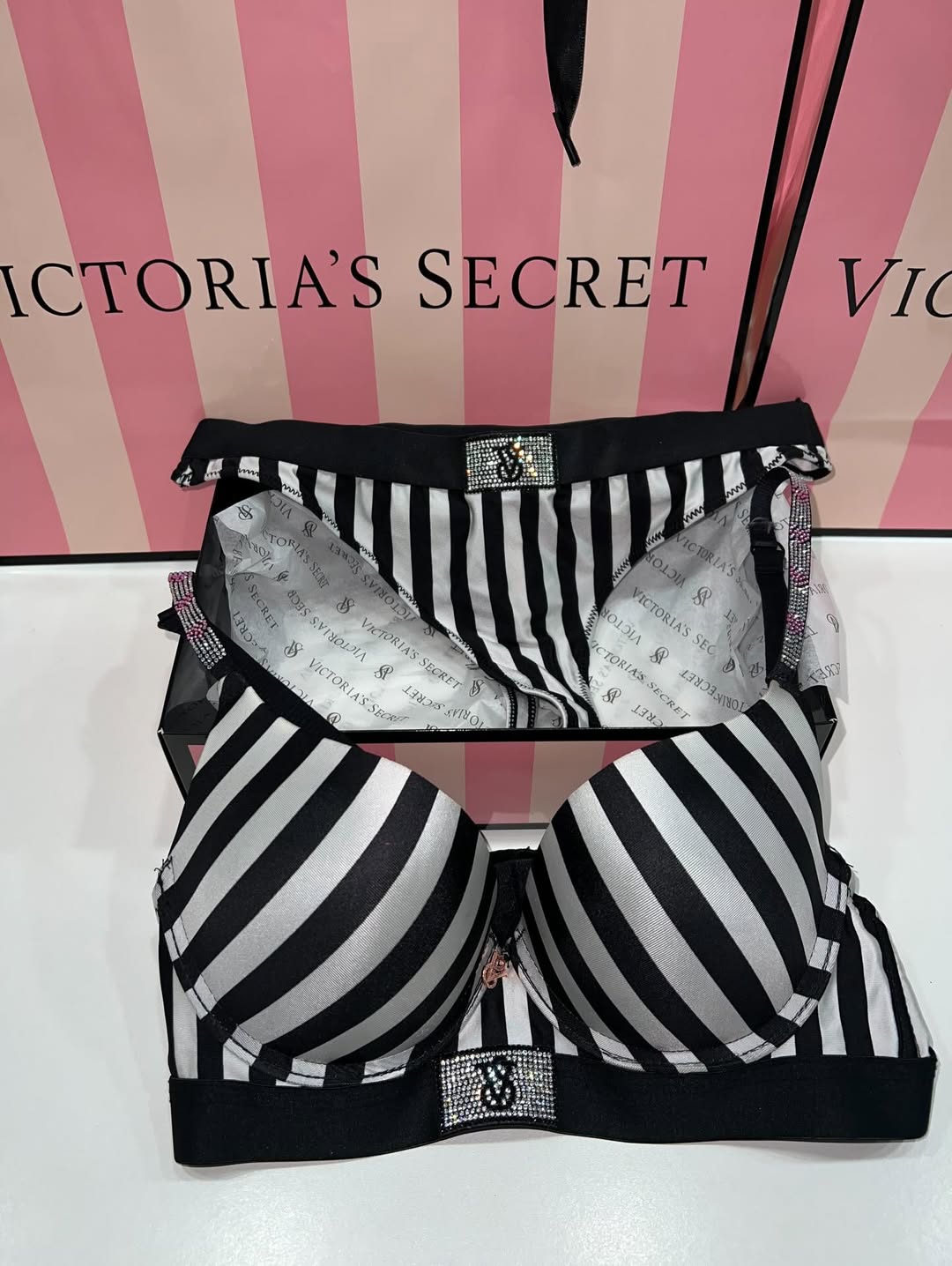 Victoria Secret Shine Patch Lightly Lined Demi Bra & Thong Set