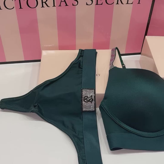 Victoria Secret Shine Patch Lightly Lined Demi Bra & Thong Set
