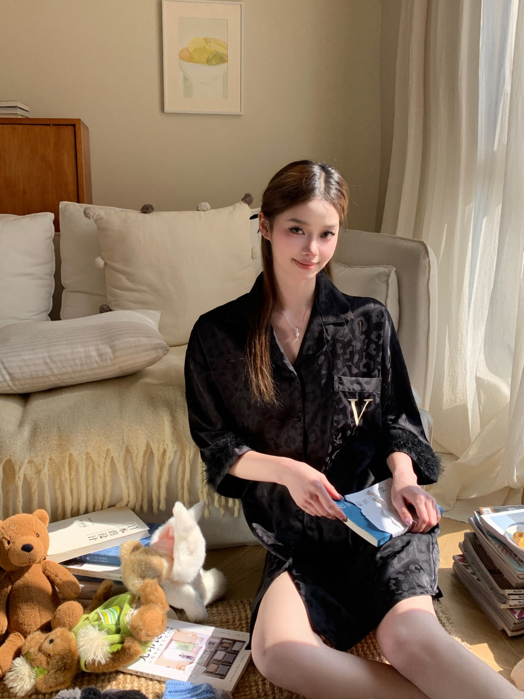 دلعي نفسك بالفخامة. استرخي بكامل أناقتك في كاش فيكتوريا من الساتان الفاخر مع أكمام مزينة بالفرو الناعم – التصميم المثالي بين النعومة والرقي. يأتي الكاش بروب طويل برباط خصر وتصميم أنثوي ناعم، مناسب للأمسيات الهادئة أو الإطلالات الفخمة داخل المنزل.