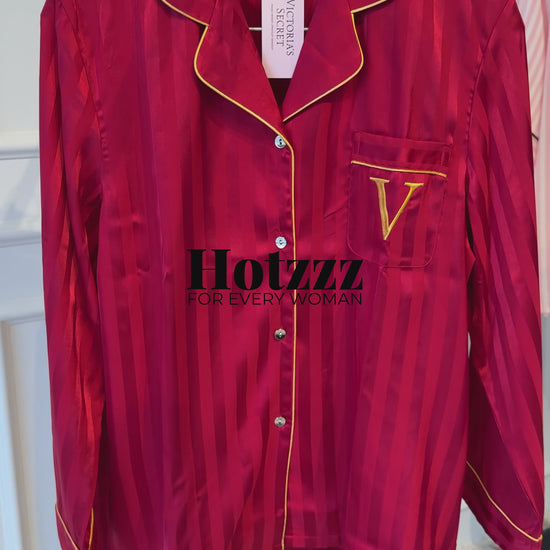 Victoria's Secret Satin Long Pajama Set - Wine Red Christmas