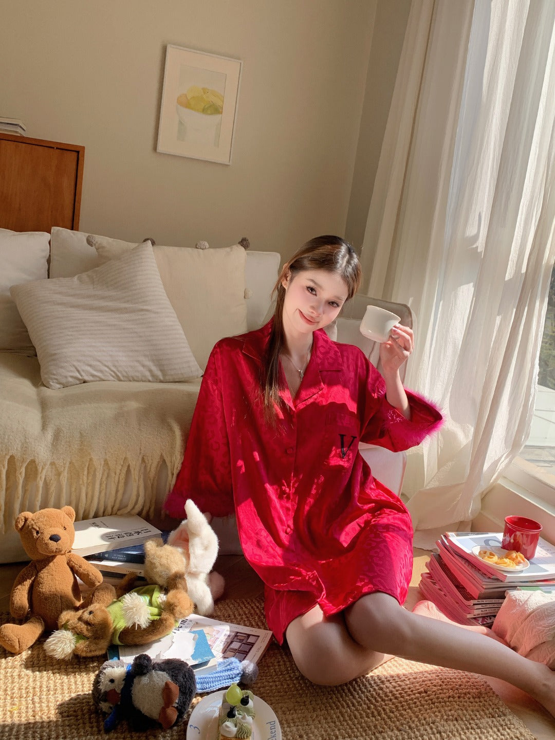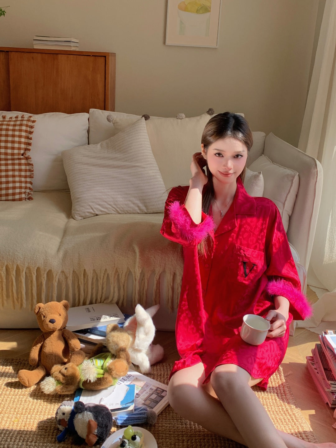 دلعي نفسك بالفخامة. استرخي بكامل أناقتك في كاش فيكتوريا من الساتان الفاخر مع أكمام مزينة بالفرو الناعم – التصميم المثالي بين النعومة والرقي. يأتي الكاش بروب طويل برباط خصر وتصميم أنثوي ناعم، مناسب للأمسيات الهادئة أو الإطلالات الفخمة داخل المنزل.